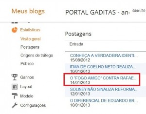 Rendeu bastante a postagem “Fogo Amigo” em que o Blog fez uma análise do tratamento dispensado ao vereador Rafael Cruz – PP por integrantes xiitas das “oposições coligadas”. O texto rendeu tanto que durante o início da tarde já estava no terceiro lugar no ranking das mais lidas.