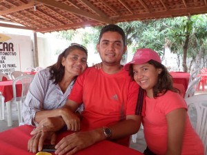 Na foto o aniversariante, a mãe Telma e a sobrinha Eduarda