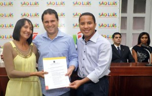 | O Prefeito Edivaldo Holanda Jr. e o Secretário Raimundo Penha durante posse dos membbros do COMESP |