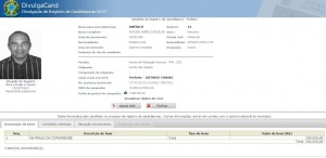 Filiado ao PTB e concorrendo com o número 14, o candidato terá o apoio dos partidos PTN, PPS e PSB compondo a Coligação Mudança sim, Continuidade não. O candidato declarou não ter bens e os limites de gastos de campanha no valor de R$ 350.000,00 (trezentos e cinquenta mil reais).