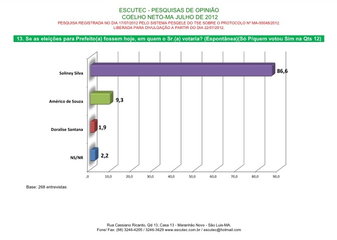 A Pesquisa Escutec foi registrada no TRE com o número MA 00048/2012 e ouviu 403 entrevistados.