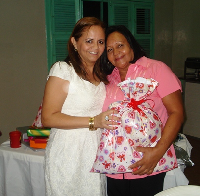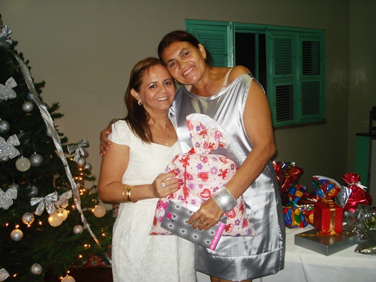 Simpática e enturmada, a 1ª. Dama participou da brincadeira de troca-troca de presentes e também foi presenteada. Além da homenagem da Câmara entregue por Lucélia Sousa (esposa do Vereador Mariano Crateús), Suely recebeu presentes ainda de Telma Alves (esposa do Vereador Val) e Elisa Oliveira (esposa do Vereador Antonio Pires – foto).