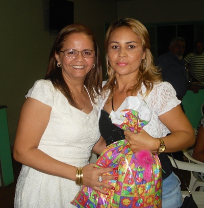 A 1ª. Dama aproveitou a oportunidade e repetiu o gesto de entregar presentes as esposas dos Vereadores. (Na foto com Telma Alves – esposa do Vereador Val)